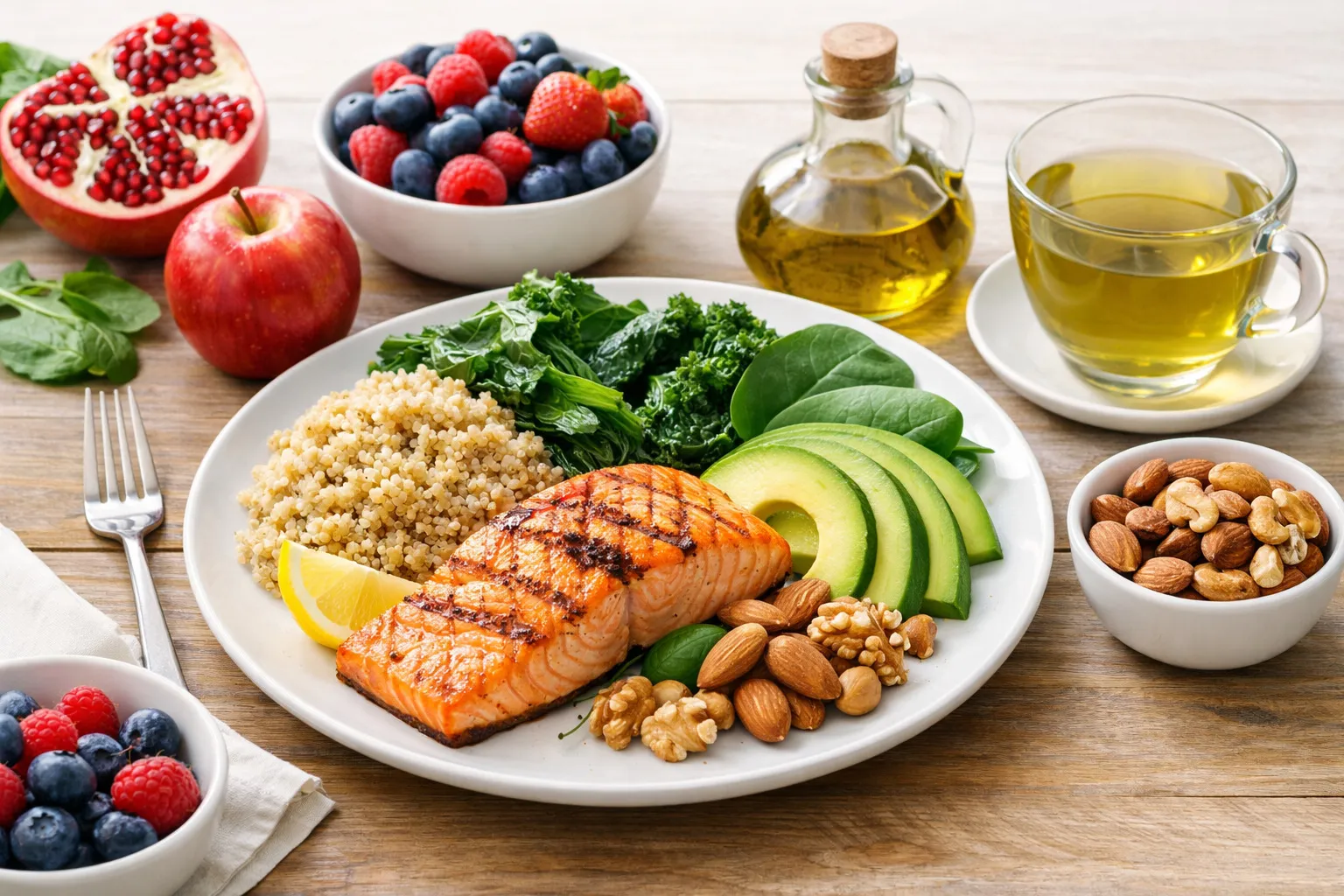 | چای سبز و قهوه فیلترشده | کاتچینها، پلیفنولها | کاهش التهاب و بهبود عملکرد عروق | ۲–۳ فنجان روزانه |